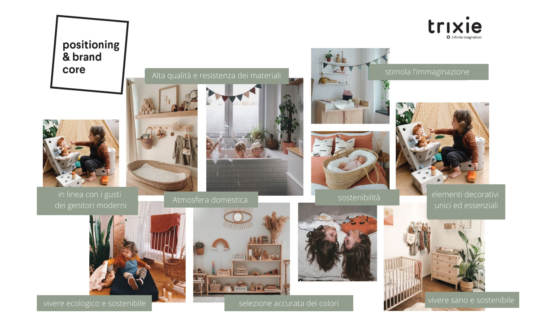 Trixie crede in un approccio olistico e orientato al futuro, affrontando meticolosamente e direttamente i processi di progettazione e produzione dei prodotti, perfettamente in sintonia con i valori e i gusti dei genitori moderni. Le necessità di una famiglia sempre in movimento, ma anche alla ricerca di design, durabilità e bellezza.