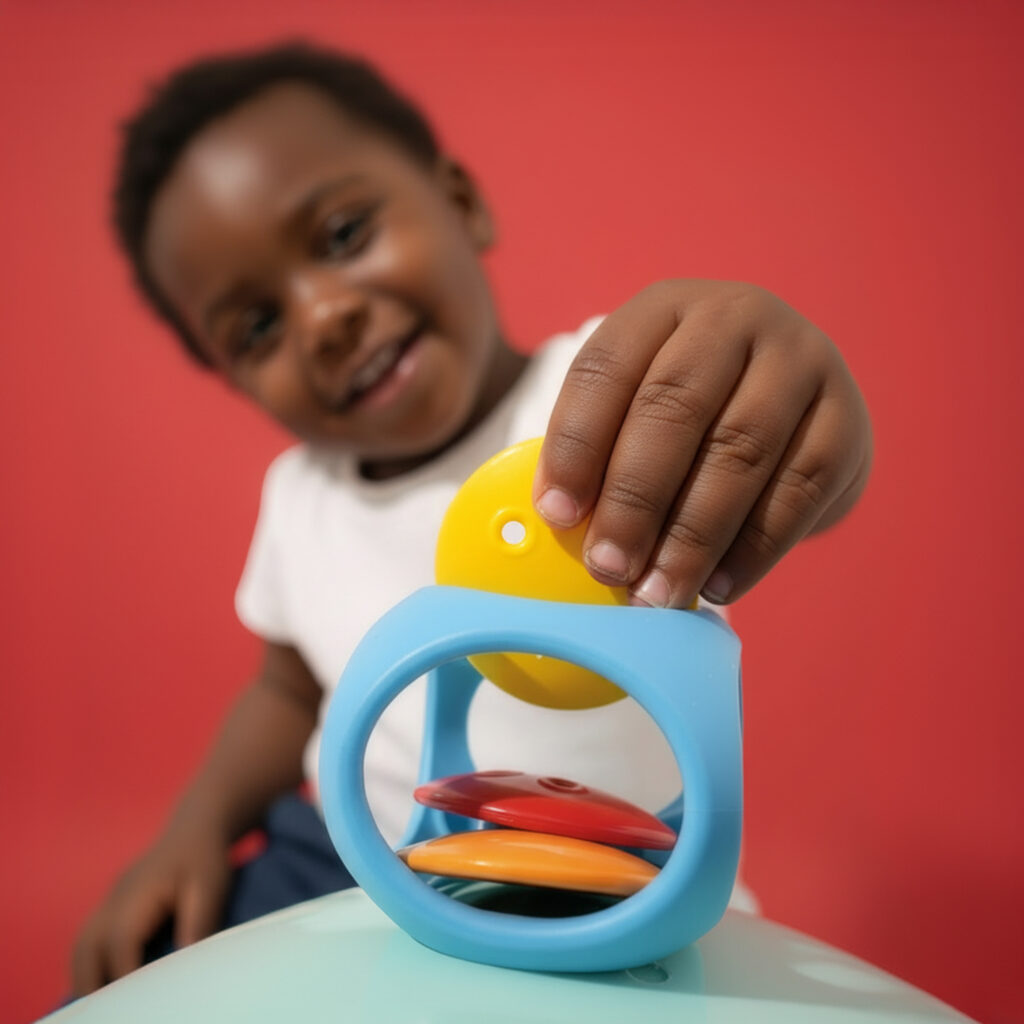 Strumenti e giocattoli musicali per avvicinare i bambini al ritmo e ai suoni, stimolando coordinazione, ascolto e sensibilità musicale.